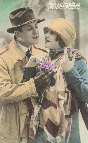 LS-18 Bonne Annee, Couple with Violets - Vintage Image
