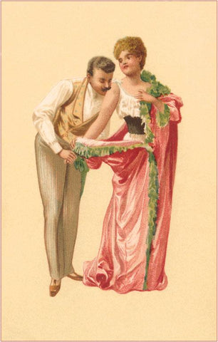 LS-32 Couple, Woman Disrobing - Vintage Image