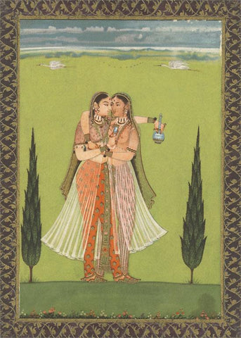 LS-41 Persian Miniature Lovers Embracing - Vintage Image