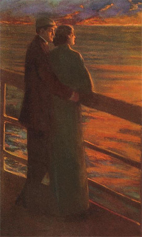 LS-49 Couple at Ship's Rail at Sunset - Vintage Image