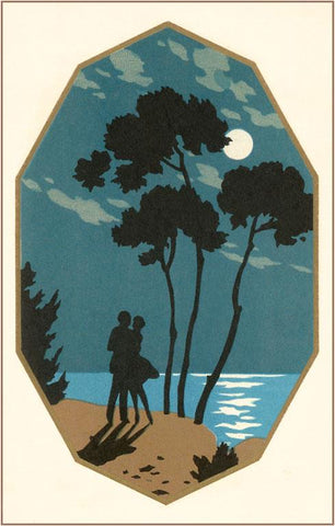 LS-52 Graphic of Couple on Beach with Trees - Vintage Image