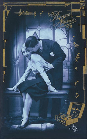 LS-54 Bonne Annee, Couple in Window Seat - Vintage Image