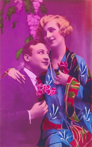 LS-58 Purple, Couple, Woman in Kimono - Vintage Image