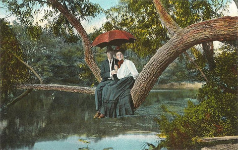 LS-63 Couple on Tree Branch over Stream - Vintage Image