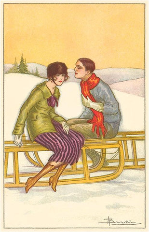 LS-70 Couple on Sled Runners - Vintage Image