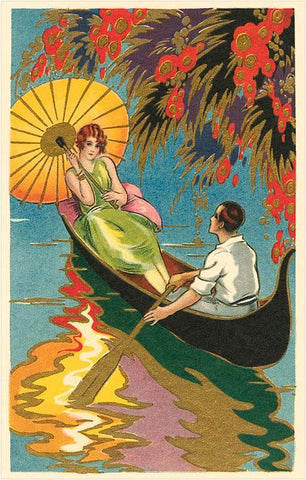 LS-78 Couple in Canoe with Parasol - Vintage Image