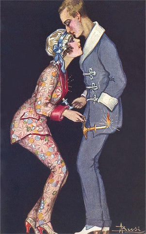 LS-97 Fashionable Couple Meeting at Night - Vintage Image