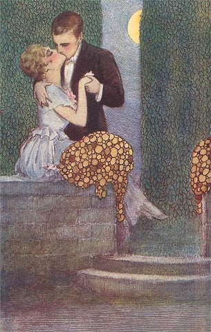 LS-99 Couple Kissing in the Moonlight - Vintage Image