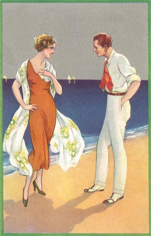LS-101 Couple Bantering on the Beach - Vintage Image