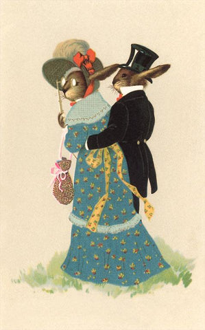 LS-106 Rabbit Couple out for a Walk - Vintage Image