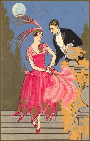LS-111 Couple on the Balcony by Moonlight - Vintage Image
