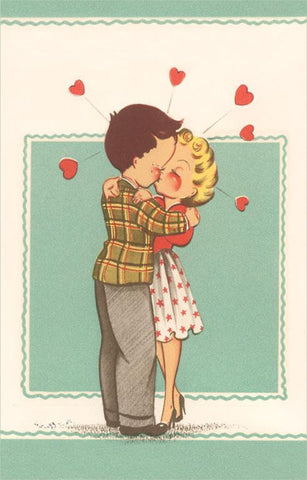 LS-121 Vintage Valentine with Couple Kissing - Vintage Image