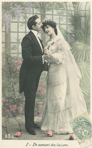 LS-126 Bride and Groom in Conservatory - Vintage Image