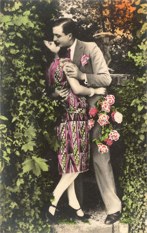 LS-128 Couple Kissing in Bushes - Vintage Image