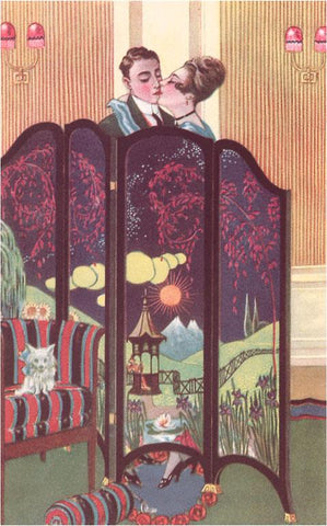LS-137 Couple Kissing Behind Screen - Vintage Image