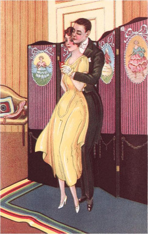 LS-138 Couple Embracing in front of Screen - Vintage Image