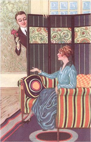 LS-139 Couple Playing by Screen - Vintage Image