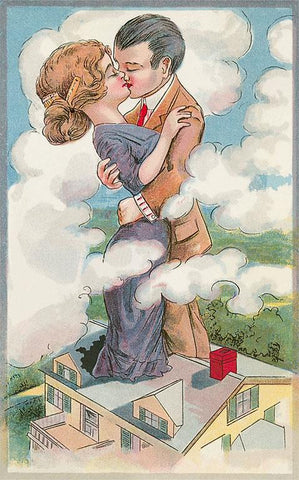 LS-151 Giant Lovers Kissing on House - Vintage Image