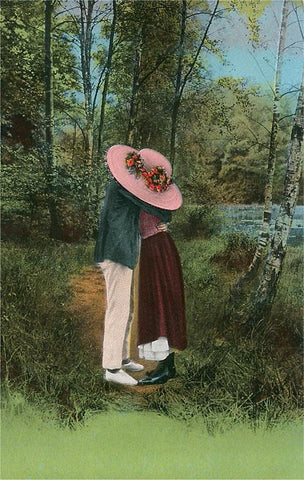 LS-153 Lovers Kissing Behind Big Hat - Vintage Image