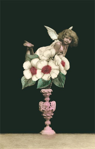 LS-160 Cupid Perched on Flowers - Vintage Image