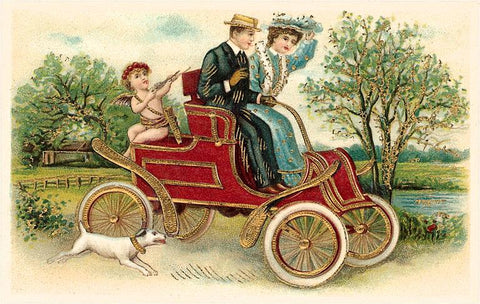 LS-195 Couple in Horseless Carriage - Vintage Image