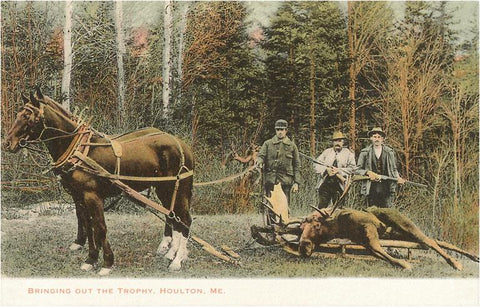 ME-152 Horses Hauling Moose, Houlton - Vintage Image