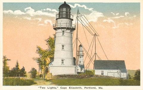 ME-234 Two Lighthouses, Cape Elizabeth - Vintage Image