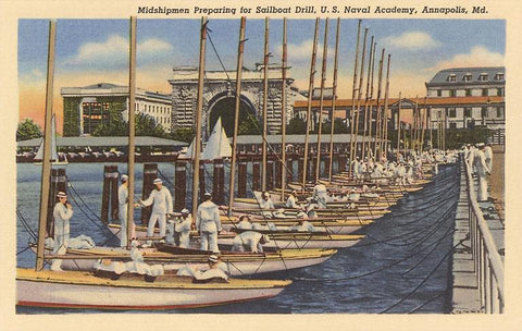 MD-152 Midshipmen with Sailboats, USNA, Annapolis - Vintage Image