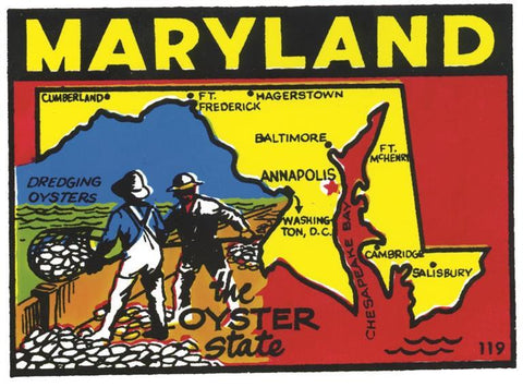 MD-249 Maryland The Oyster State Map Card - Vintage Image