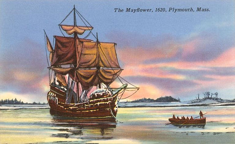 MA-41 The Mayflower, Plymouth, Mass., Illustration - Vintage Image