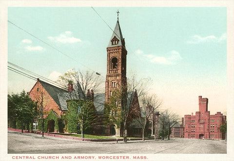 MA-156 Central Church and Armory, Worcester, Mass. - Vintage Image
