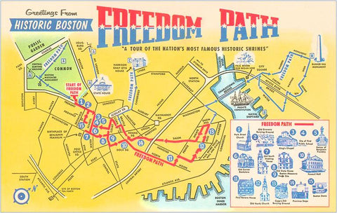 MA-613 Freedom Path, Map of Historic Boston, Mass. - Vintage Image