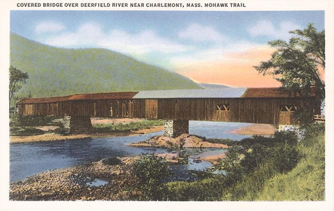 MA-914 Deerfield River, Covered Bridge - Vintage Image