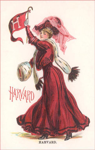 MA-1066 Harvard coed with school flag and muff - Vintage Image