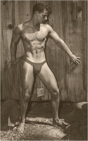 MZ-25 Muscle Man Posing by Wood Fence - Vintage Image