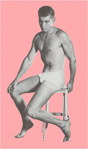 MZ-31 Man in Jockey Shorts on Stool with Pink Background - Vintage Image