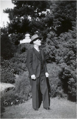 MZ-47 Man in Three-Piece Suit Standing in Garden - Vintage Image