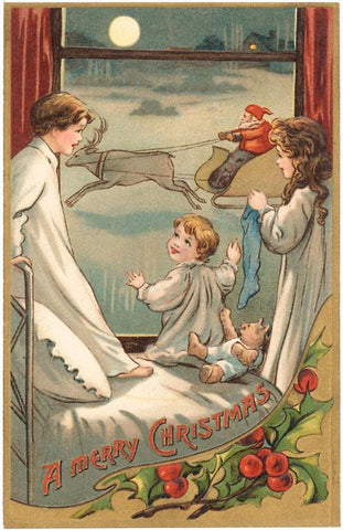 MC-26 A Merry Christmas, Children at Window Watching Santa - Vintage Image