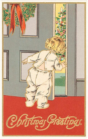 MC-31 Christmas Greetings, Child at Door - Vintage Image