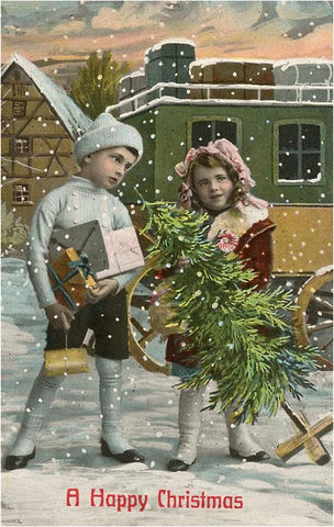 MC-49 A Happy Christmas, Children in Snow - Vintage Image