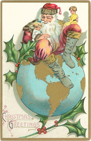 MC-95 Christmas Greetings, Santa on Globe - Vintage Image
