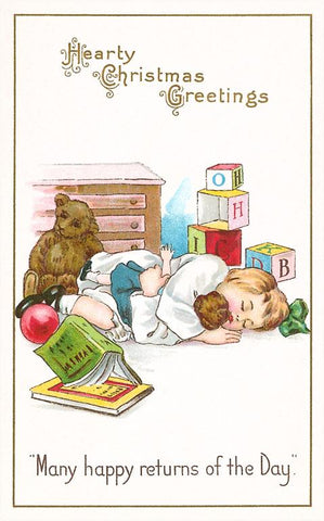 MC-107 Hearty Christmas Greetings, Sleeping Child - Vintage Image