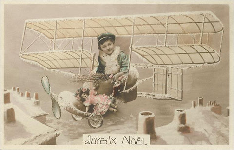 MC-186 Joyeux Noel, Boy with Biplane - Vintage Image