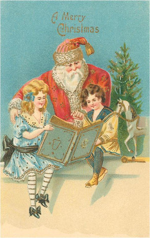 MC-190 Santa Claus and Children Reading - Vintage Image