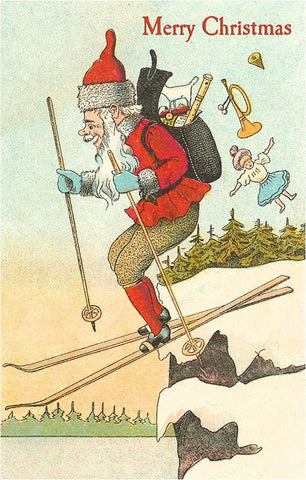 MC-203 Merry Christmas, Santa Skiing - Vintage Image