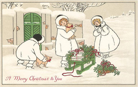 MC-204 A Merry Christmas, Children with Piglets - Vintage Image