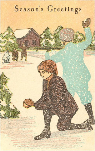 MC-241 Season's Greetings, Snowball Throwers - Vintage Image