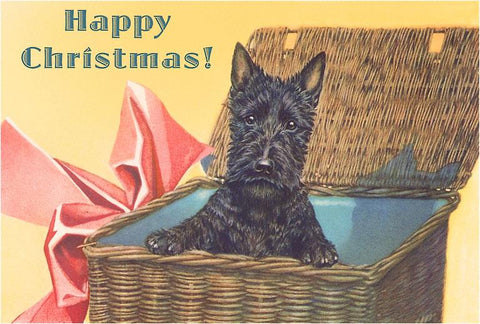 MC-243 Happy Christmas, Scotty Dog in Basket - Vintage Image