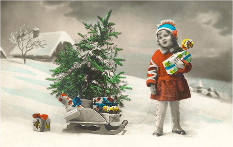MC-253 Girl with Tree on Sled - Vintage Image