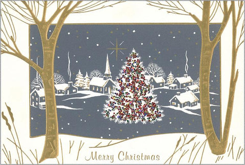 MC-319 Merry Christmas, Colorful Tree with Gray Town - Vintage Image